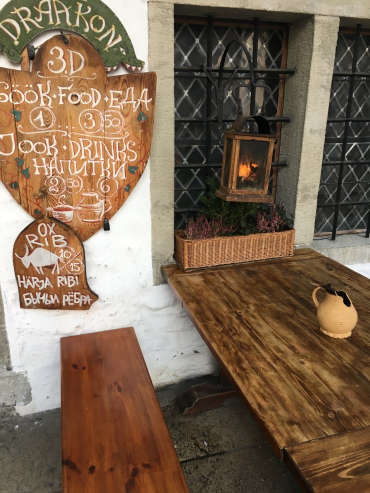 Kohvik Dannebrog Café – Go! Located just down the defense wall walkway from the Maiden Tower Café, the Dannebrog Café is all about the surrounding atmosphere. I wouldn’t eat here, but it’s a must stop for coffee, a beer, maybe a pastry or quick snack. Starting at ground level and walking up the steep stairs to the walkway on the wall and then making your way to the small, nondescript entrance is a fun experience. Grab your order and then head out to one of the outside tables to enjoy he view and pretend you’re in the latest Robin Hood movie.