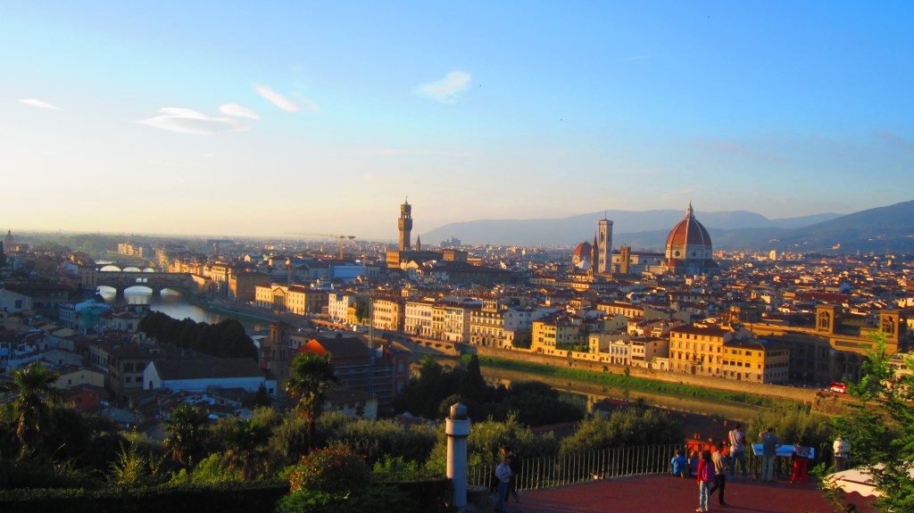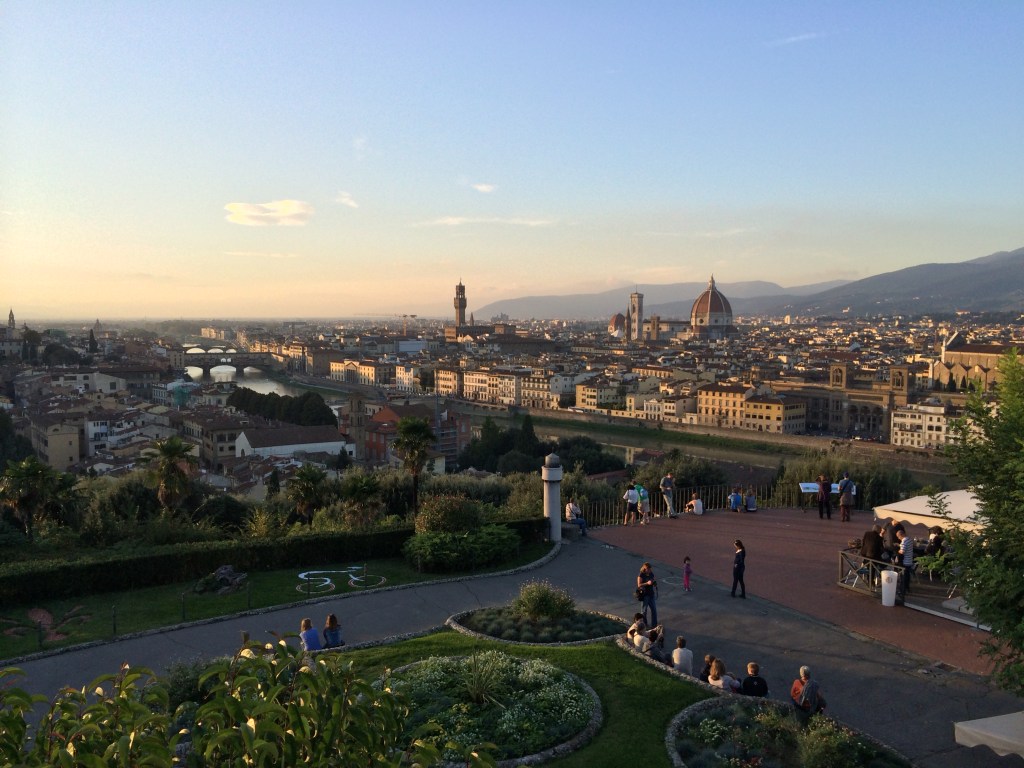 Another option we highly recommend is the Giardino Bardini. They are gardens very close by the Piazzale Michelangelo – you can see them on Google Maps – but since there is an entry fee they are far less crowded, even empty at times, and do not have any solicitors. As a bonus, the gardens are beautiful in their own right and the Villa Bardini is a nice little museum with great views. It makes for a wonderful hike. You can start at ground level off of Via Bardi only 5 minutes walk from the Ponte Vecchio bridge and wind your way up to the Villa Bardini viewing area.