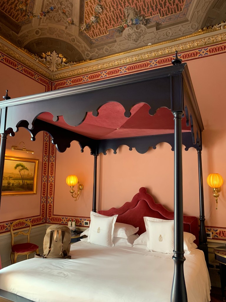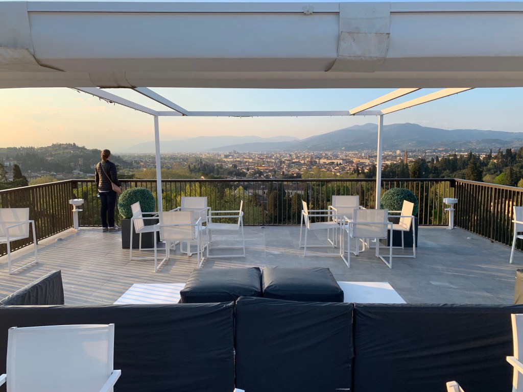 Villa Cora: Go!Go!Go! We stayed at the Villa Cora on our second trip to Florence, learning our lesson about staying right in the crowded, loud tourist center. The Villa Cora was one of our absolute favorite hotels across all of our travels. Nothing not to love, pure luxury but also with character, class and remarkable decor. You will feel like you are staying at one of the museums or are on set at a period piece romance movie. Just look at the pictures! It’s also only a 15-minute walk from central Florence but they have shuttles that run all day (we took Ubers when we didn’t walk). It’s extremely quiet, relatively small, the public rooms are breathtaking, the rooms themselves are beautiful, it has amazing rooftop deck views of the Duomo, breakfast was amazing, and there is even a chic pool overlooking the Florence skyline.